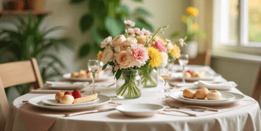 Start with light, airy colors to reflect the freshness of the season. A white linen tablecloth, soft pastel napkins, or even a rustic wooden table with a few sprigs of greenery instantly creates a springtime feel.