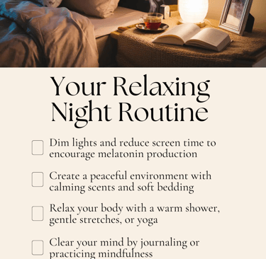 A relaxing night routine isn’t about perfection—it’s about creating small, intentional moments that help you unwind and prepare for restful sleep. Experiment with these tips, find what resonates with you, and turn bedtime into the most peaceful part of your day. Sleep tight!